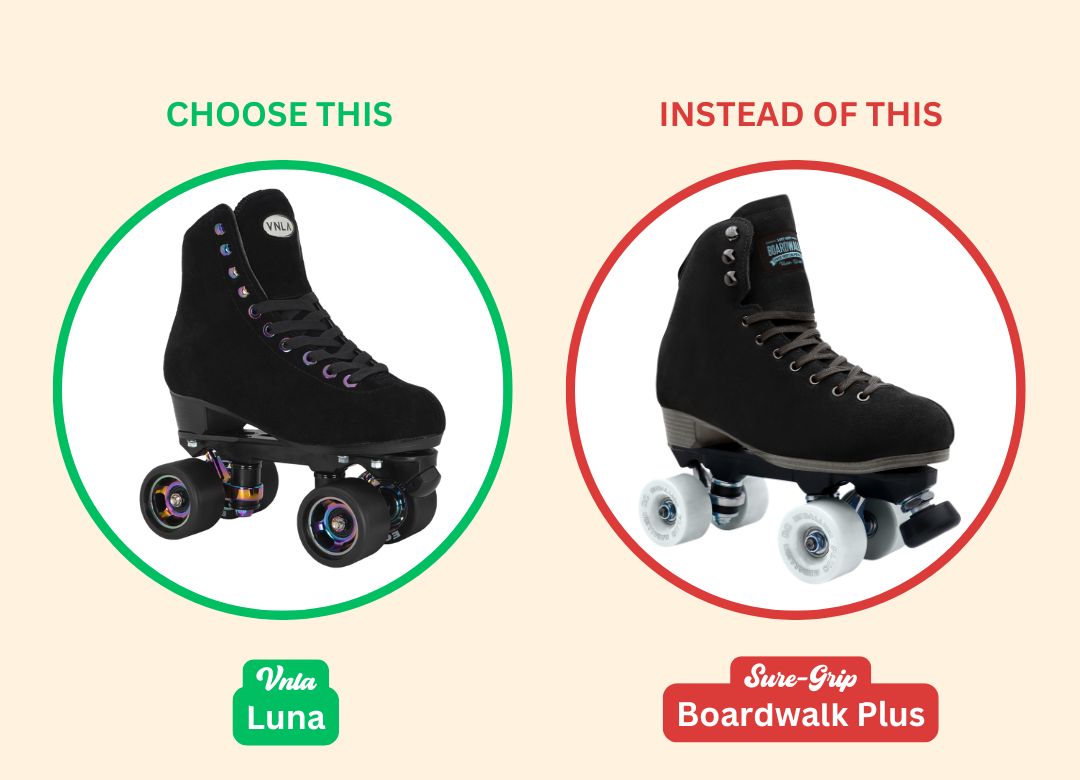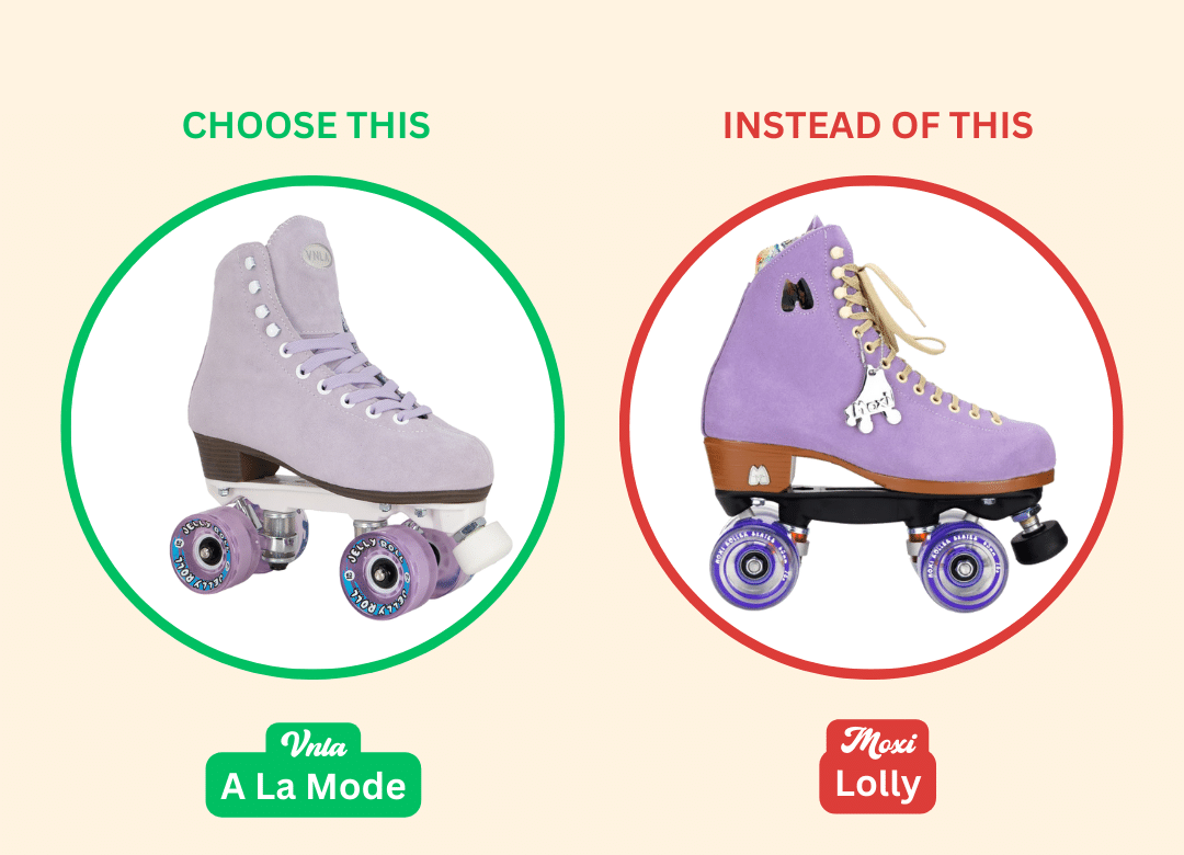 The A La Mode boot by VNLA has a wider toe box than similar suede high-top models. It comes in 4 colors, including neutral options, and Roller Skate Nation offers 6 customization options for the plate (nylon or aluminum) and wheels (indoor or outdoor). With genuine suede uppers, the $200 starting price is a pleasant surprise.